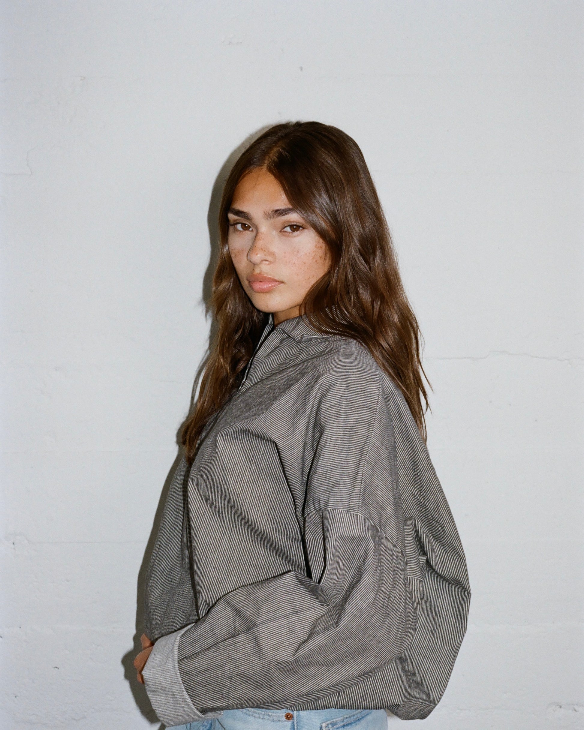 In dead stock striped denim (lightweight)